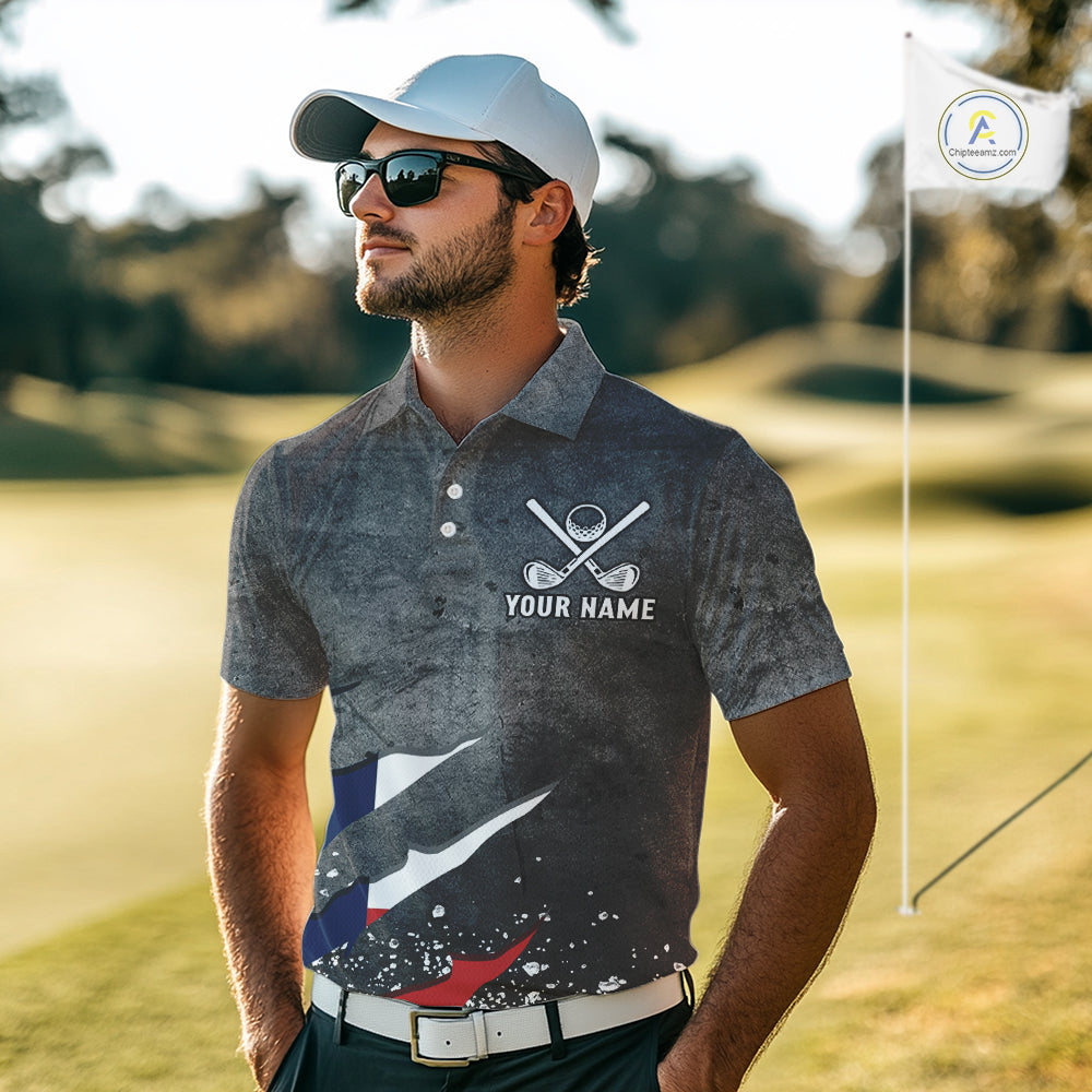 Gray Grunge Texas Flag Mens golf polo shirts Custom patriotic Golf attire for men NQS10580