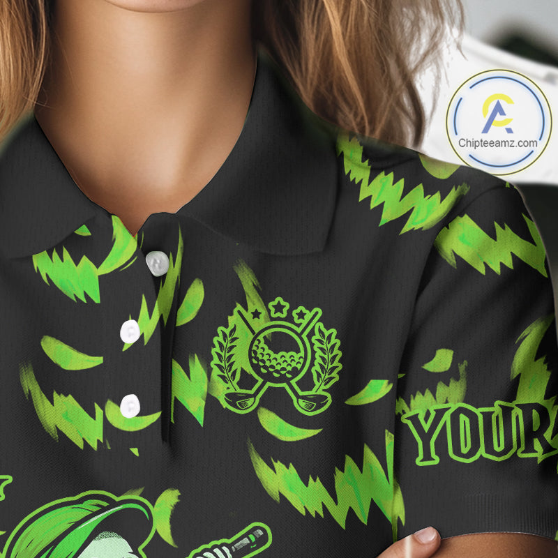 Green and Black Halloween Pattern Funny Skull Golf polo shirt for Women Custom Halloween golf top NQS10662