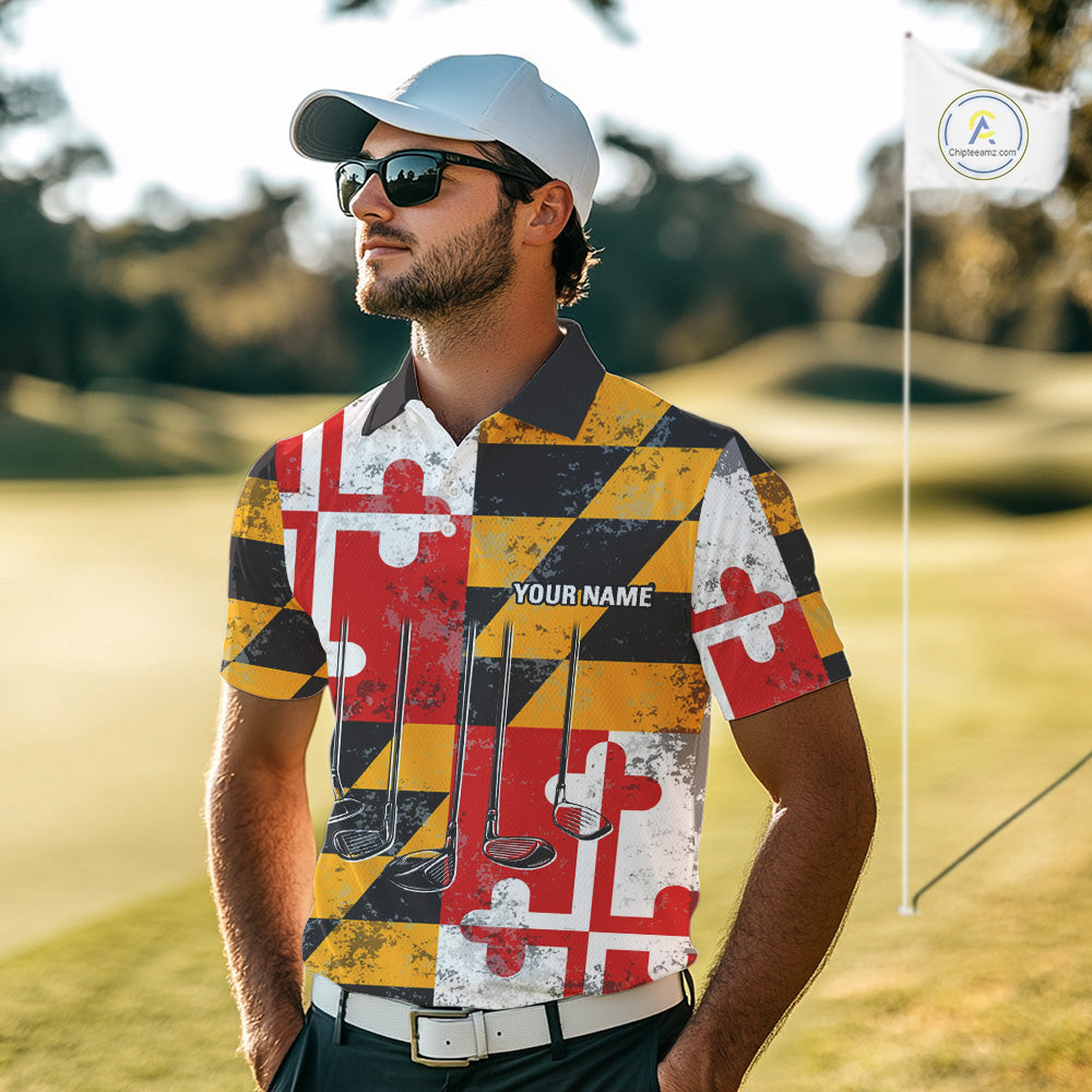 Maryland Flag Golf Clubs Mens Golf polo shirt Custom patriotic Mens golf top, personalized golf gifts NQS10382