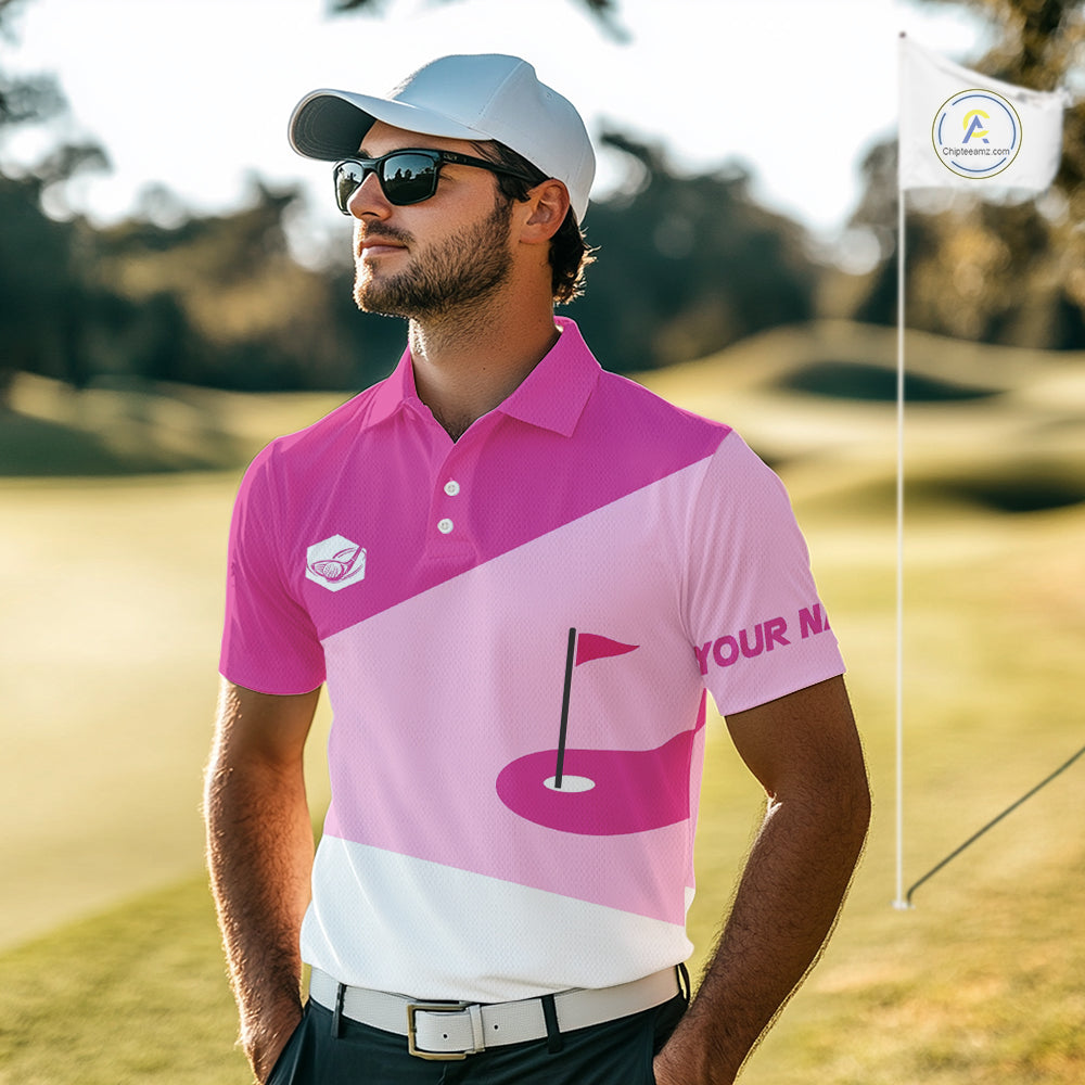 Mens golf polo shirts custom pink and white golf apparel for men, golfing gifts NQS10410