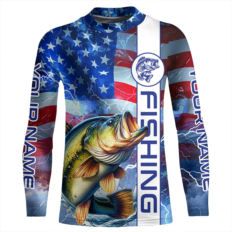 American flag Largemouth Bass fishing Long Sleeve Fishing Shirts custom Patriotic Bass fishing jerseys NQS7704