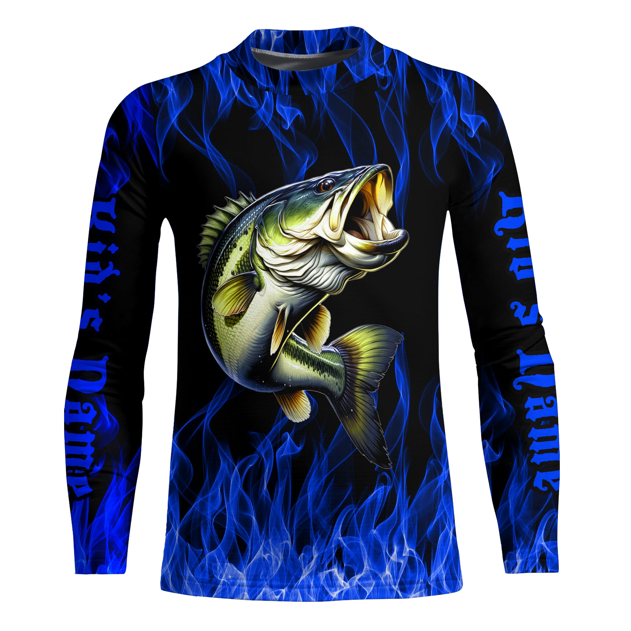 Custom Bass Fishing jerseys, Bass Long sleeve Fishing Shirts personalized Fishing gifts | blue IPHW3535
