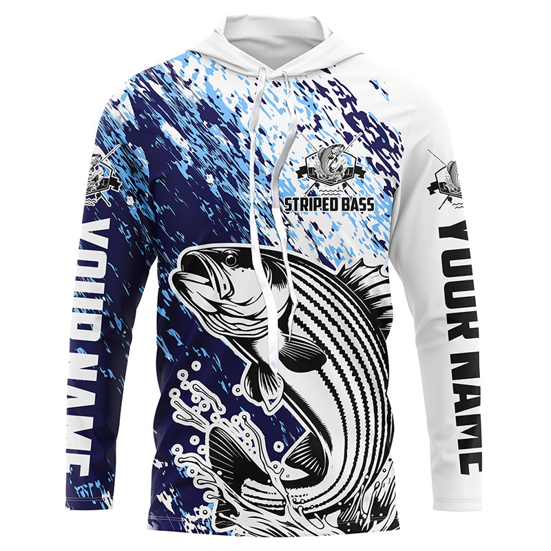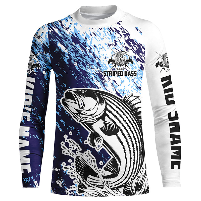 Striped Bass Fishing Custom Long Sleeve Performance Fishing Shirts, Striper Fishing Jerseys | Blue IPHW5821