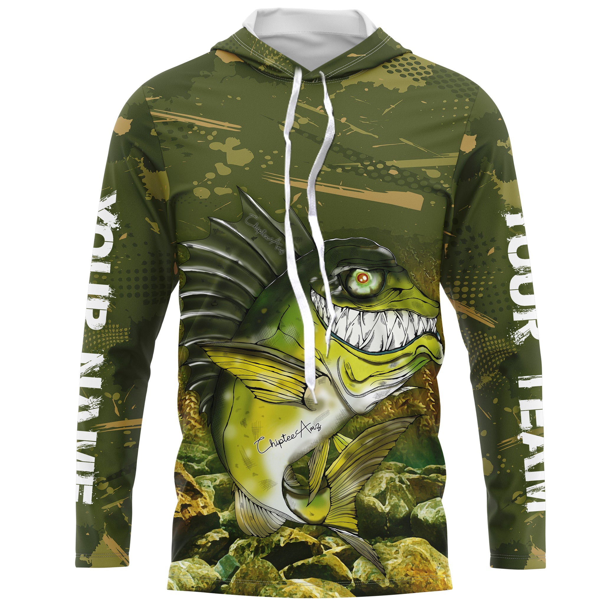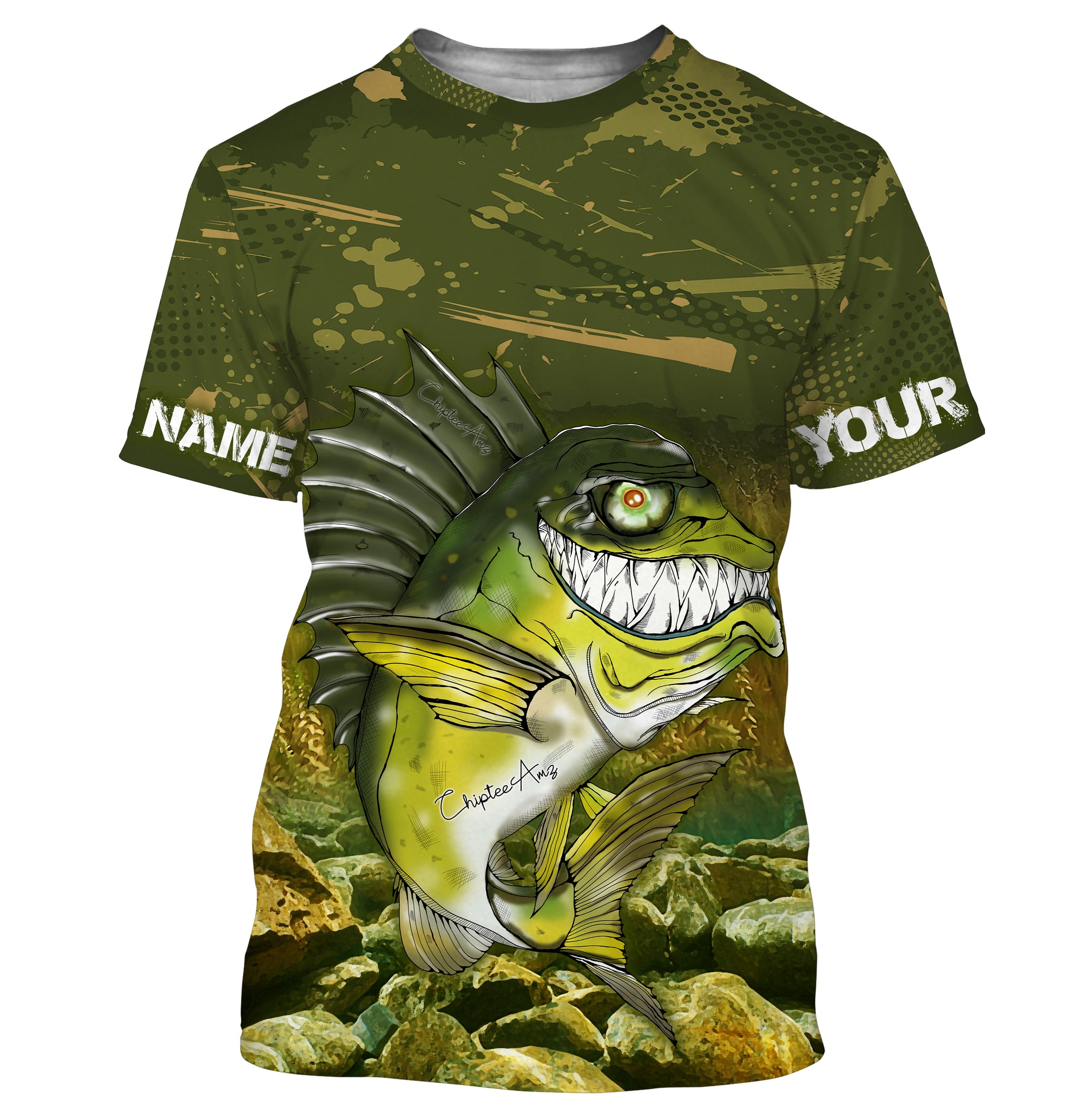 Largemouth Bass fishing camo custom name with angry bass fish ChipteeAmz's art UV protection shirts AT032