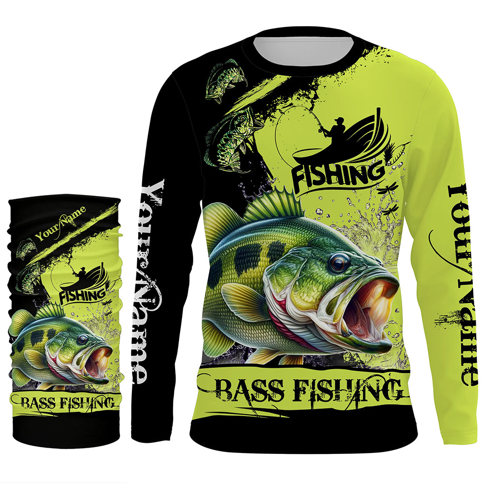Largemouth Bass fishing Custom Name performance long sleeve fishing shirts uv protection bass jerseys NQS3664
