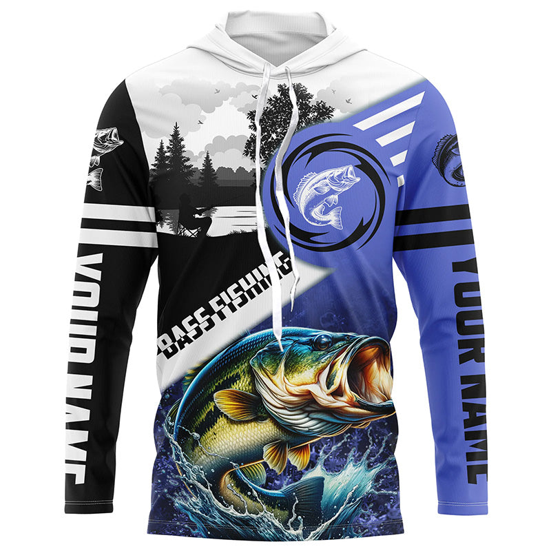 Largemouth Bass Fishing Blue performance fishing shirt UV protection custom name long sleeves NQS2121