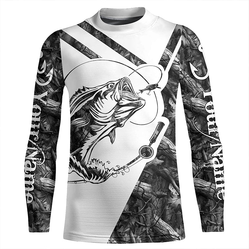 Largemouth Bass Fishing gray camo performance fishing shirts Customize name long sleeves shirts NQSD176