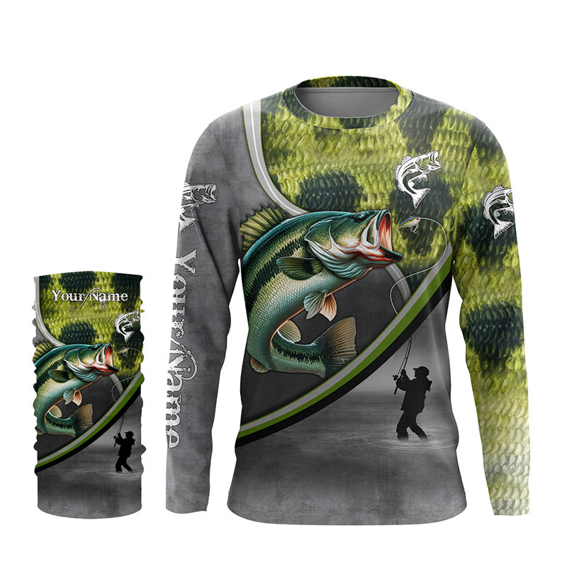 Largemouth Bass fishing scales personalized bass fishing shirts, sun protection fishing apparel NQS3294