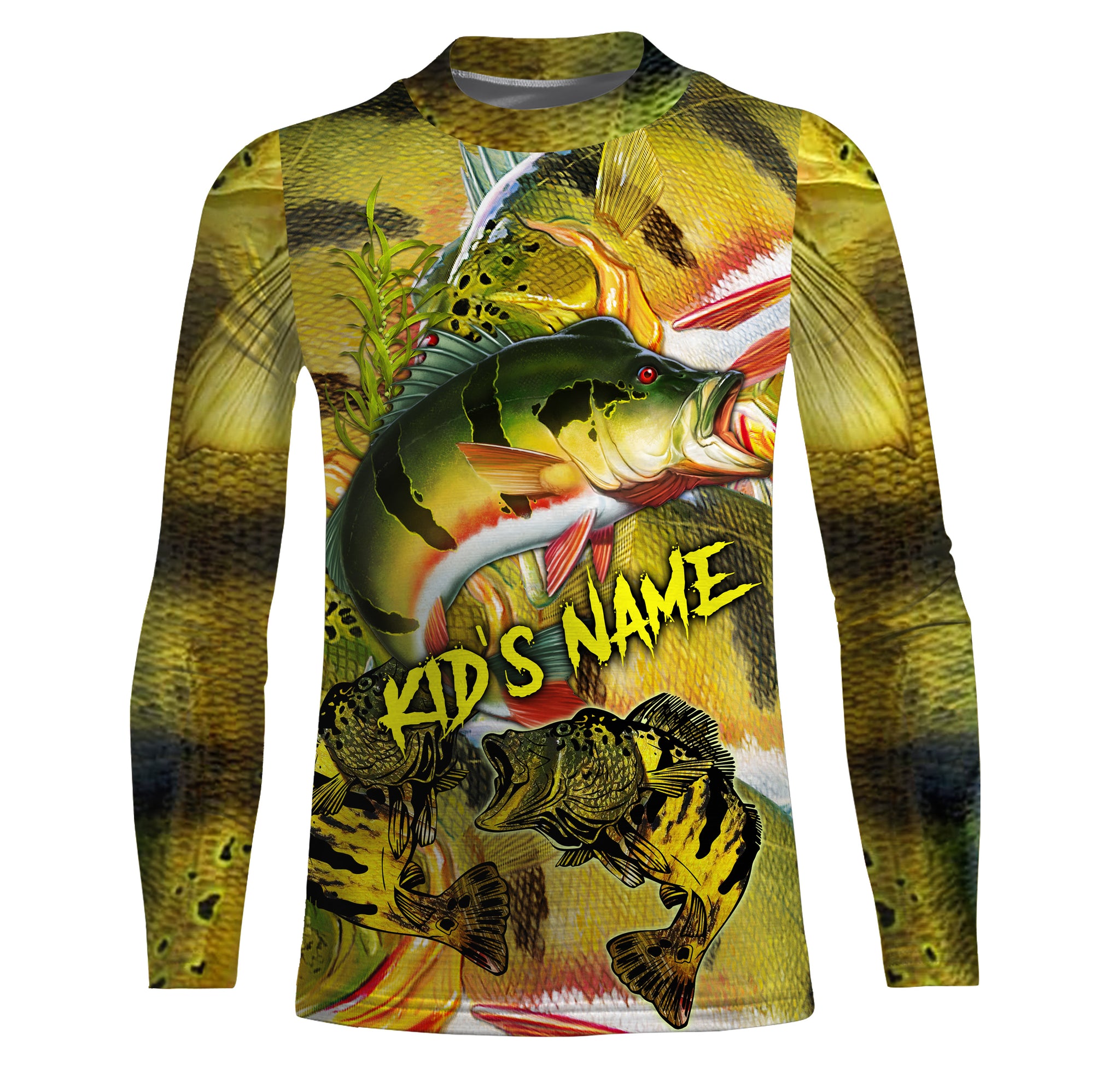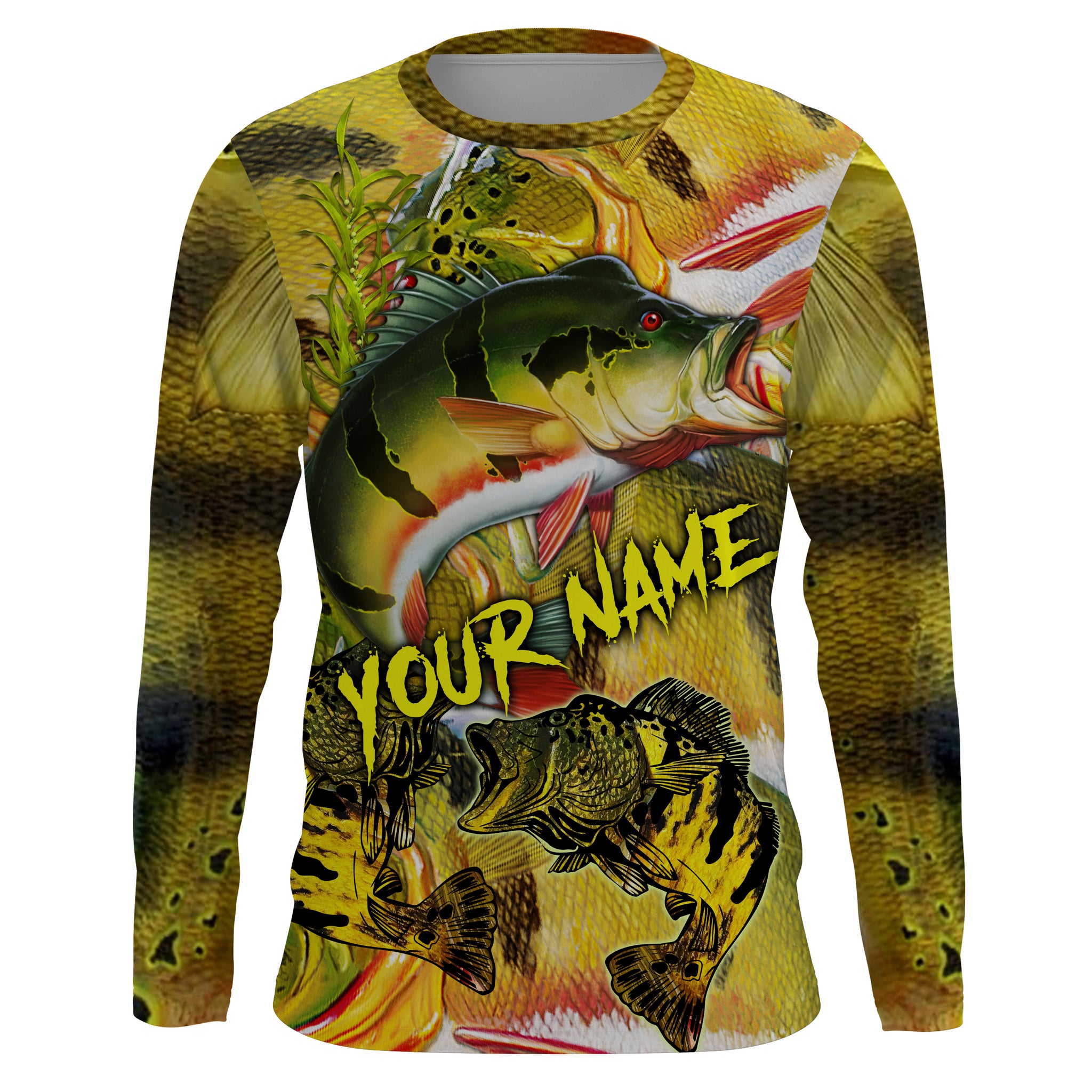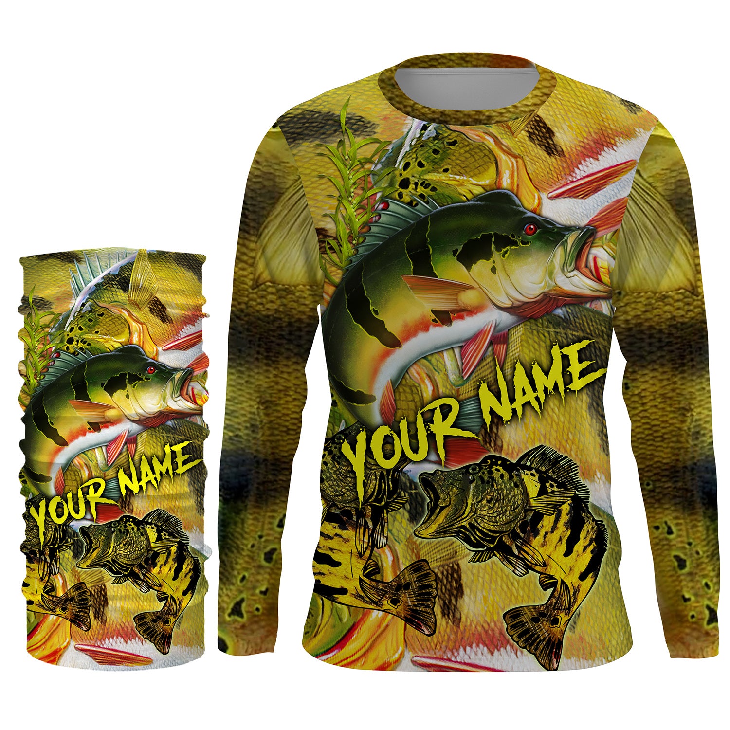 Personalized Peacock bass Fishing jerseys, bass scales long sleeve fishing shirts uv protection NQS3847