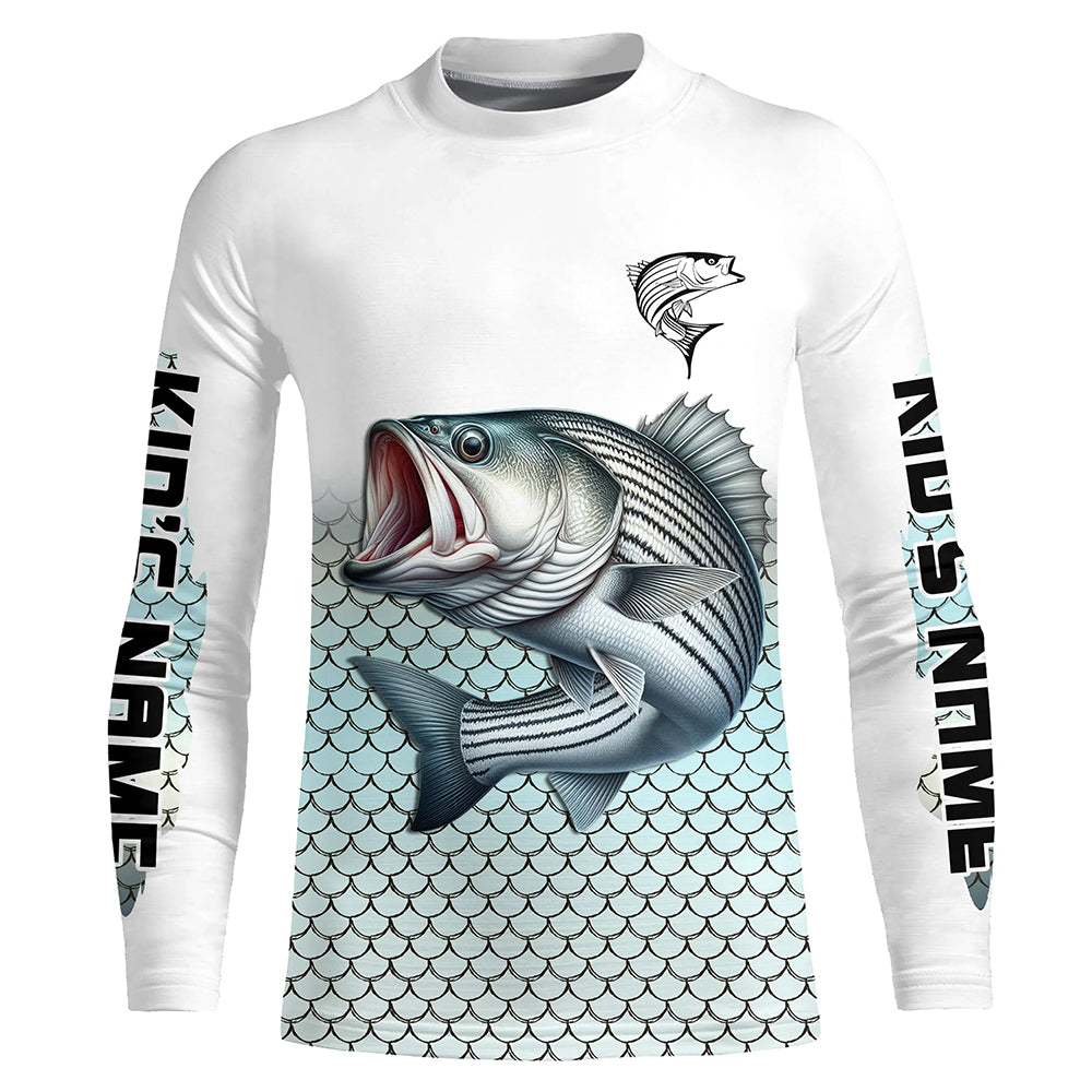 Striped Bass Fishing jerseys, Striper scales Custom name Long Sleeve performance Fishing Shirts NQS4513