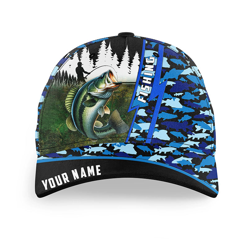 Largemouth Bass fishing blue camo Custom fishing hat Unisex Fishing Baseball Angler fishing hat cap NQS6696