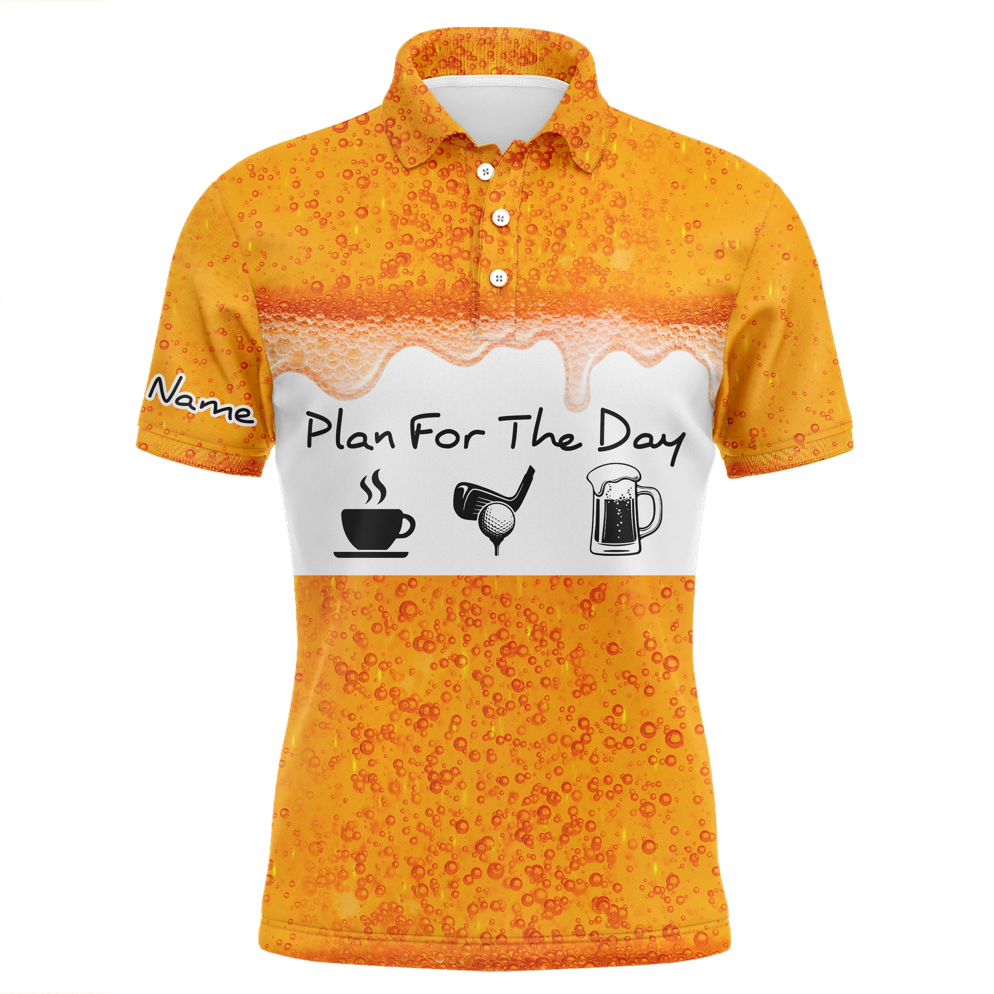Mens Golf Polo Shirts Custom Name Beer Golf Plan Personalized Golf Shirts For Men, Golfer Gifts LDT0139