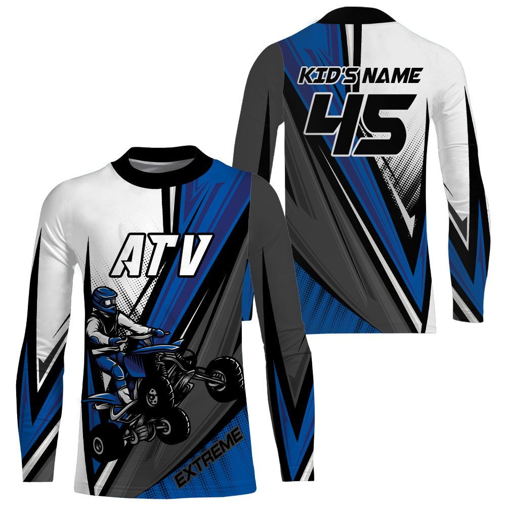 Custom ATV Motocross Jersey Blue UPF30+ Quad Bike Shirt Racing Adult Youth Off-road NMS1342