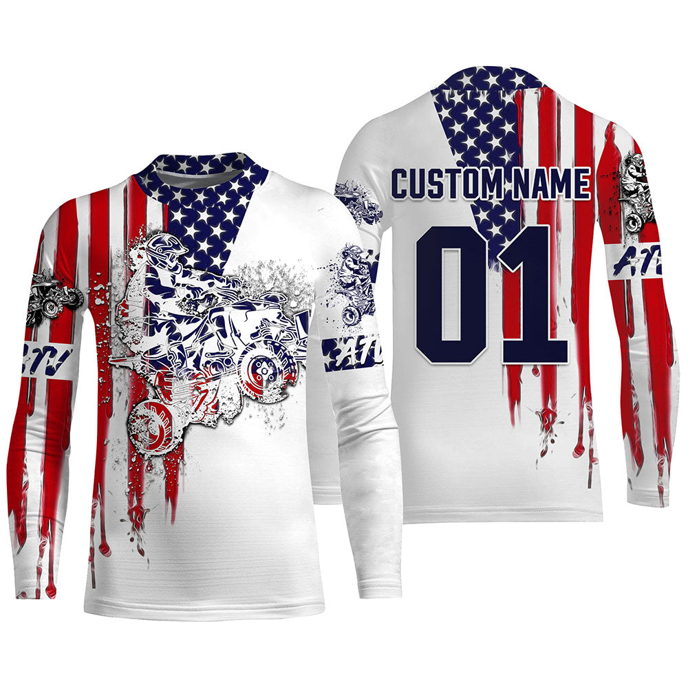 Custom Quad Bike Shirt UPF30+ ATV Motocross Jersey Racing Adult Youth American Flag Long Sleeves NMS1338