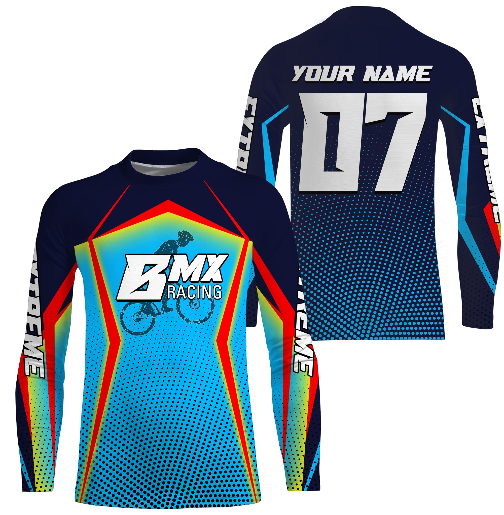 Custom Blue BMX racing jersey UPF30+ Adult kid bike shirt extreme cycling bicycle motocross gear| SLC58