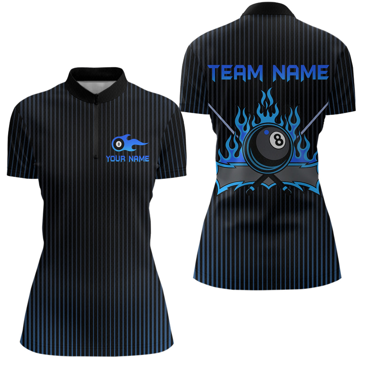 Custom Blue 8 Ball Flame Billiard Shirts for Women, Billiard Team Polo & 1/4 Zip Shirts NNT62
