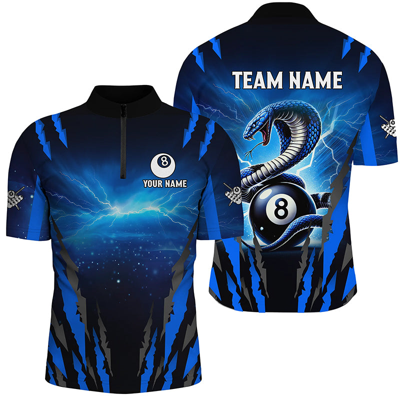 Personalized Thunder Lightning Cobra Snake Men Billiard Shirts, 8 Ball Billiard Team Jerseys |Blue TDM2680