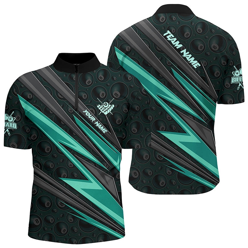 Personalized Name Turquoise Billiard Jerseys For Men Custom 8 Ball Billiard Shirts Pool Team Jersey TDM2855