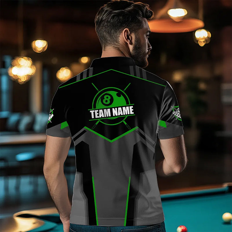 Billiard Jerseys For Men Custom Polo & Quarter-Zip Billiard Shirts, Team Pooler Short Sleeve |Green TDM3386