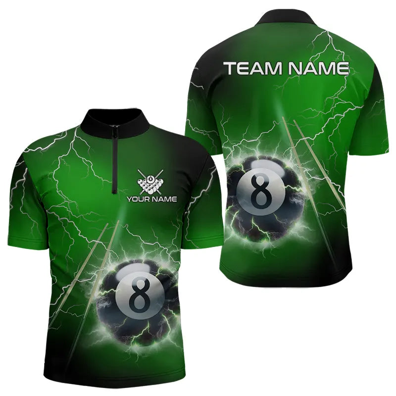 Personalized Green 3D Thunder Lightning 8 Ball Pool Billiard Shirts For Men, Billiard Team Jerseys TDM3549