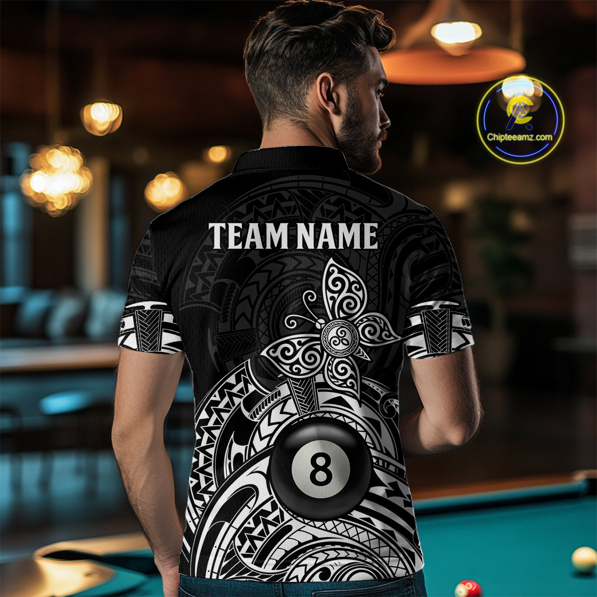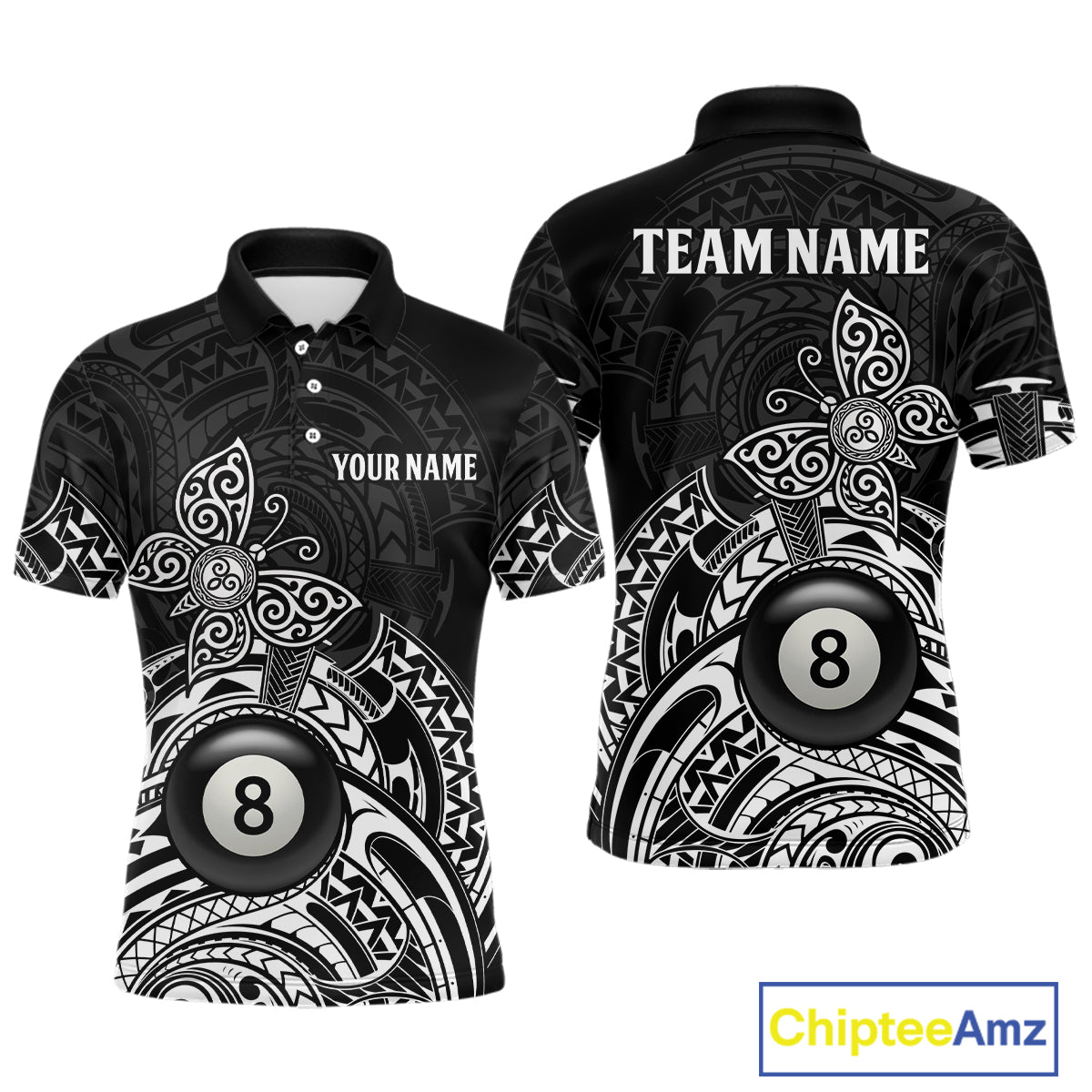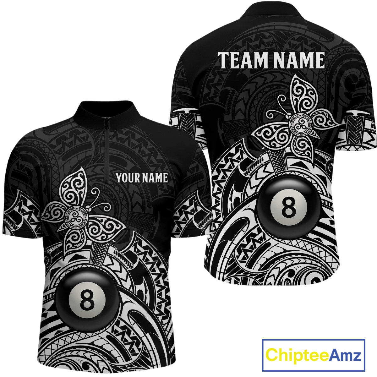 Custom White Black Tribal Butterfly Billiard Shirts For Men | 8 Ball Pool Team Jerseys TDM3987