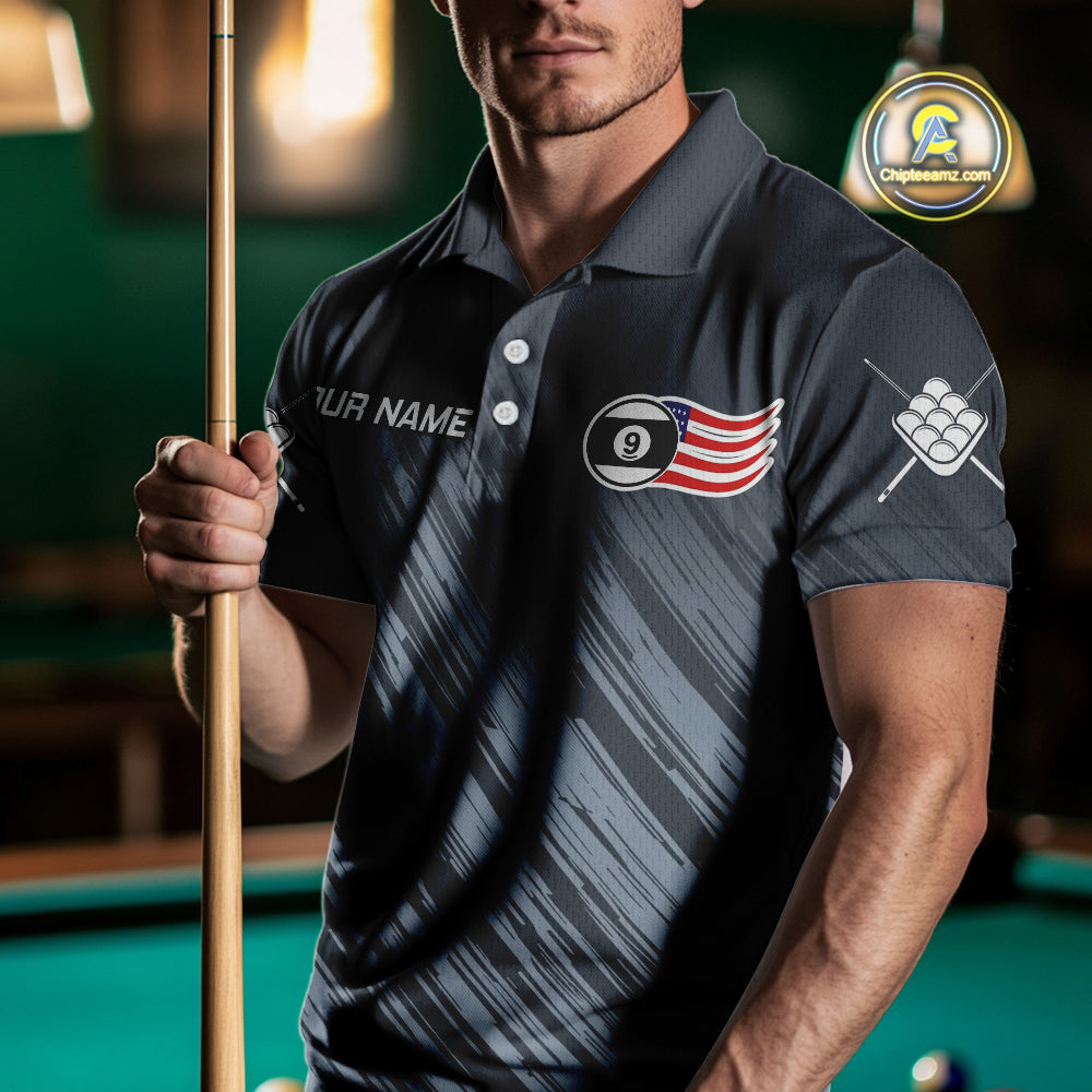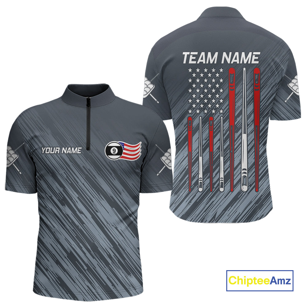 Personalized Billiard US Flag 9 Ball Pool Shirt For Men, Billiard Team Jersey Polo & 1/4 Zip TDM4426