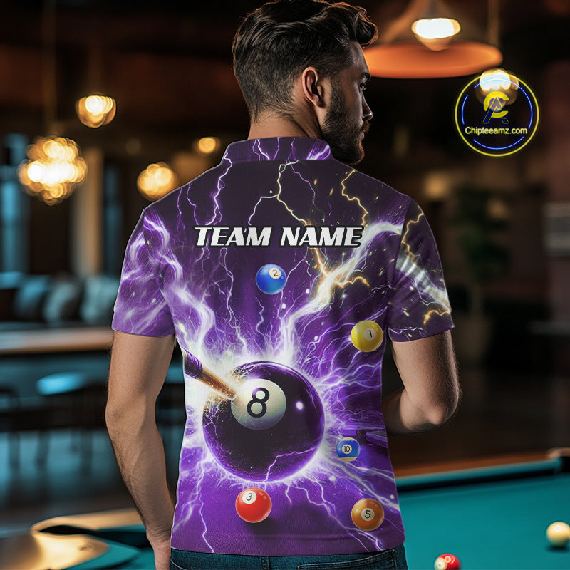 Thunder Lightning Strike 8 Ball Men Billiard Shirts Custom Purple Billiard League Pool Team Jersey TDM4544