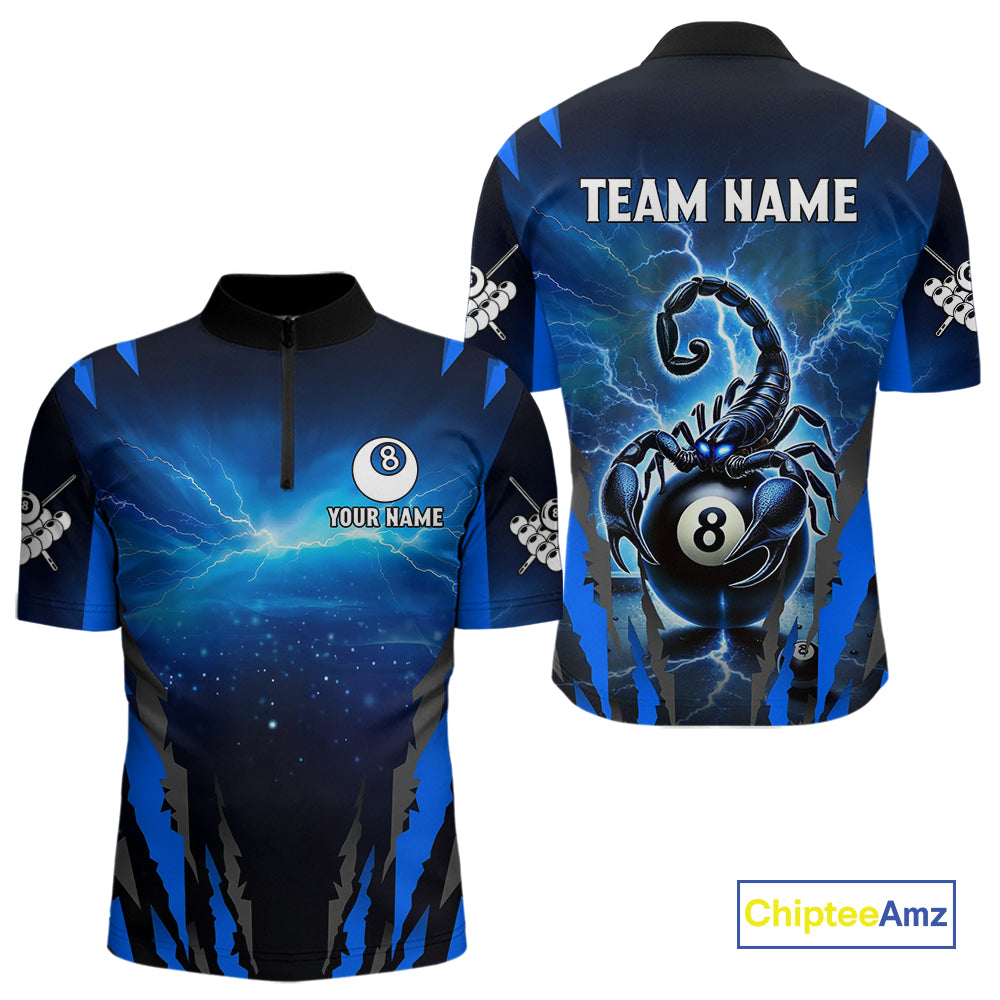 Personalized Thunder Lightning Scorpion Billiard Shirt For Men, 8 Ball Billiard Team Jerseys |Blue TDM4867