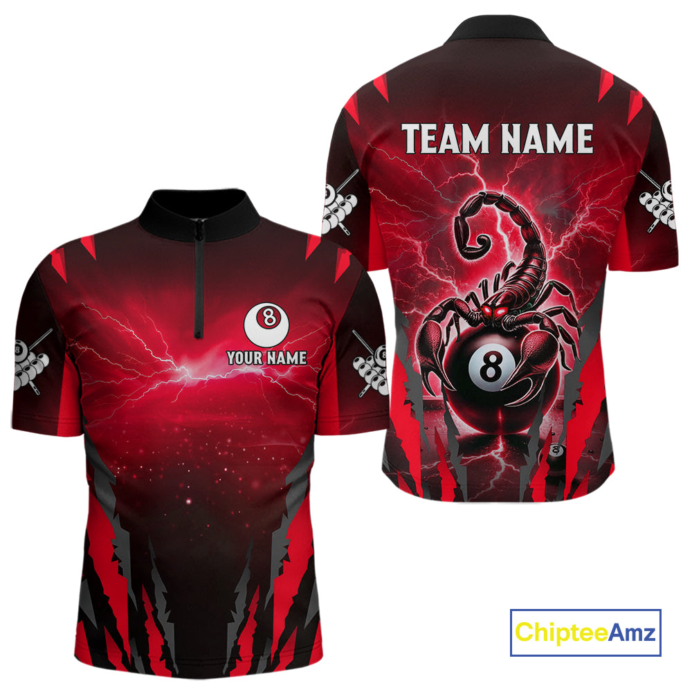 Personalized Thunder Lightning Scorpion Billiard Shirt For Men, 8 Ball Billiard Team Jerseys |Red TDM4869