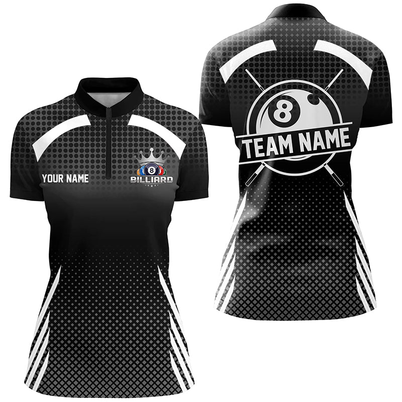 Personalized Billiard Tournament Pool Shirts For Women, Best 8 Ball Billiard Team Jerseys |Black TDM2130
