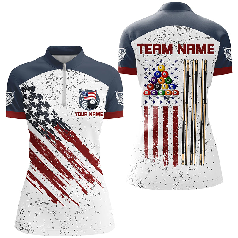 White Grunge American Flag Custom Billiard Shirts For Women, Patriotic Team Player Pool Jerseys TDM2326