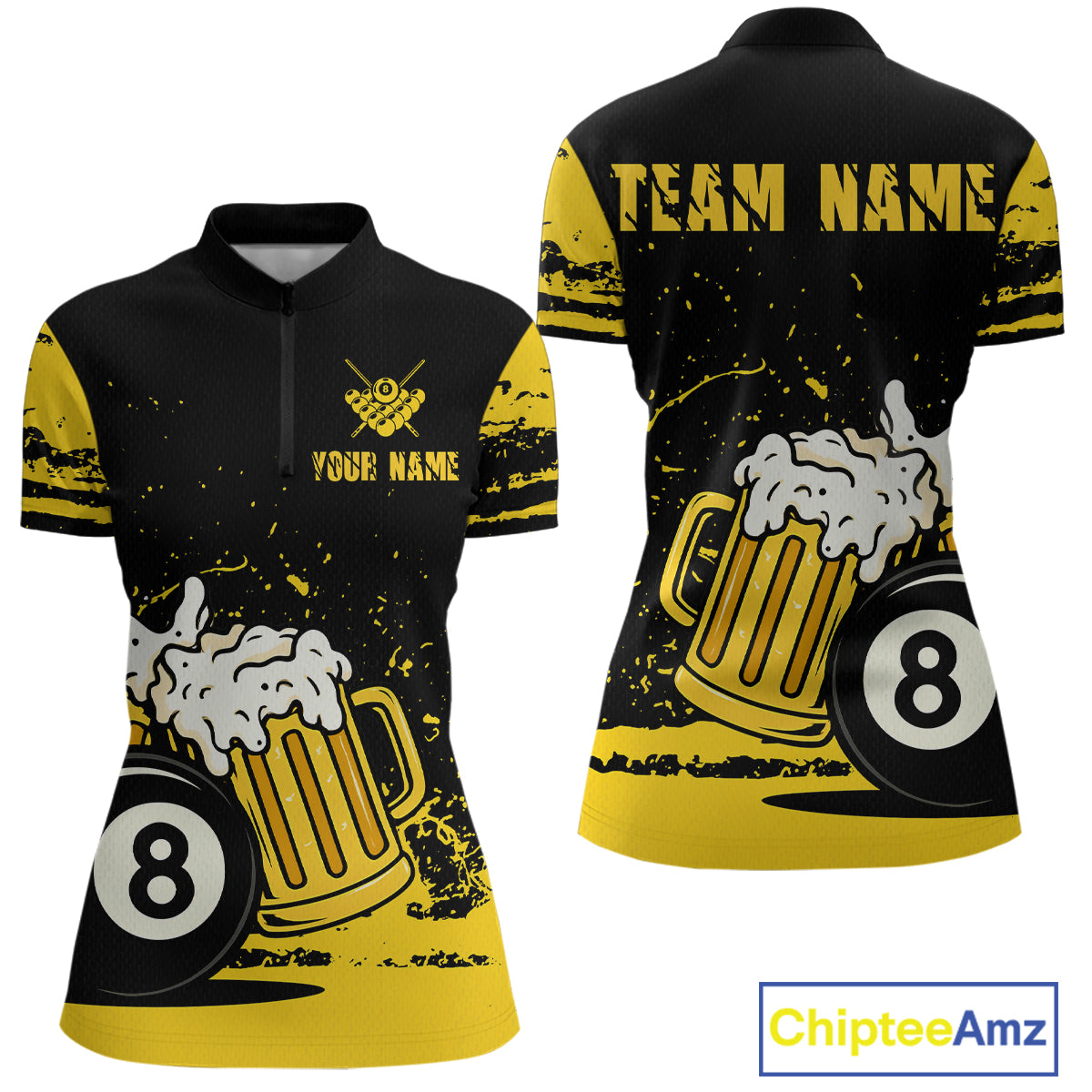 Custom Black and Yellow 8 Ball Beer Billiard Shirts for Women, Billiard Team Polo & 1/4 Zip Shirts NNT68