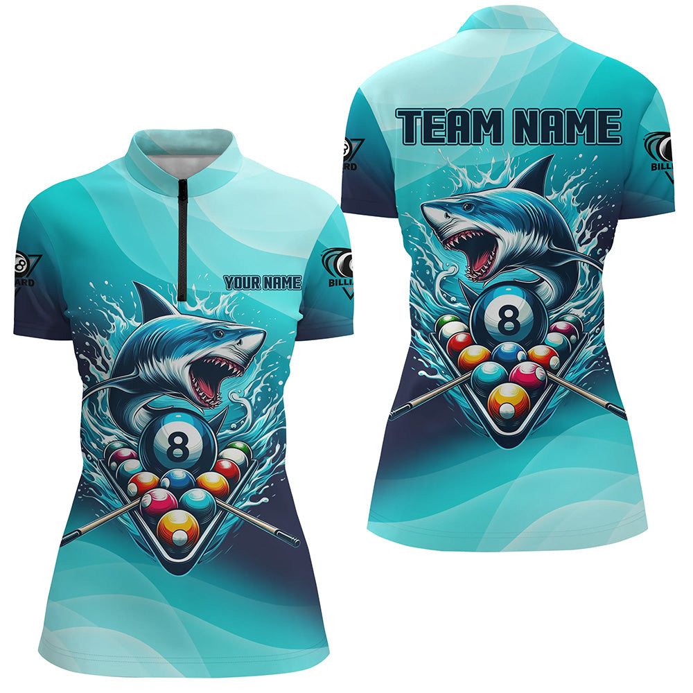 Personalized Blue Pool Ball Shark Billiard Shirts For Women Custom Team League Billiard Jerseys TDM2969