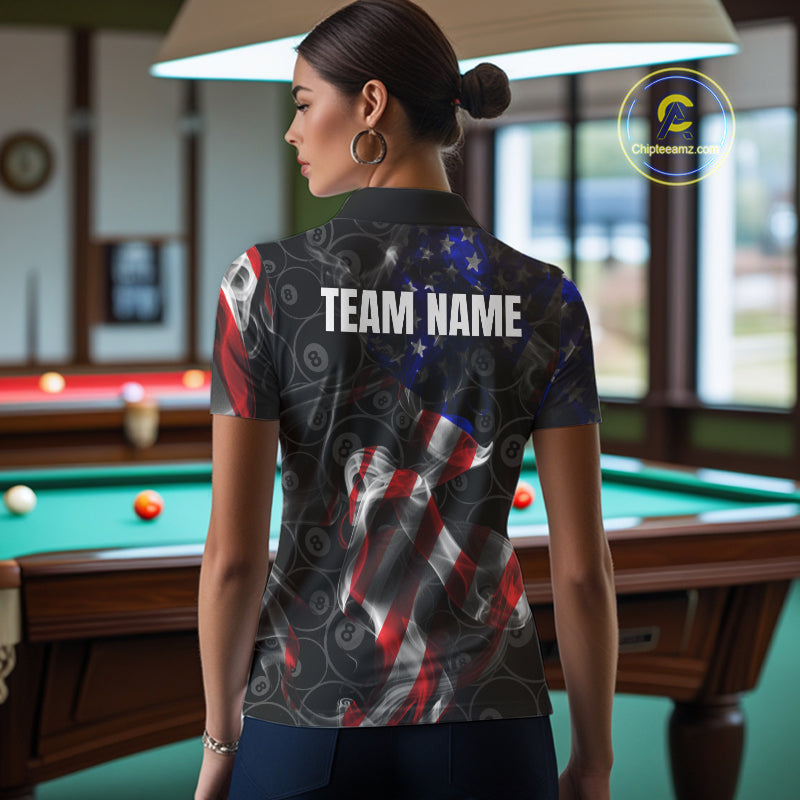 American Flag Smoke 8 Ball Billiard Shirts For Women Custom Patriotic Billiard Pool Team Jerseys TDM4028