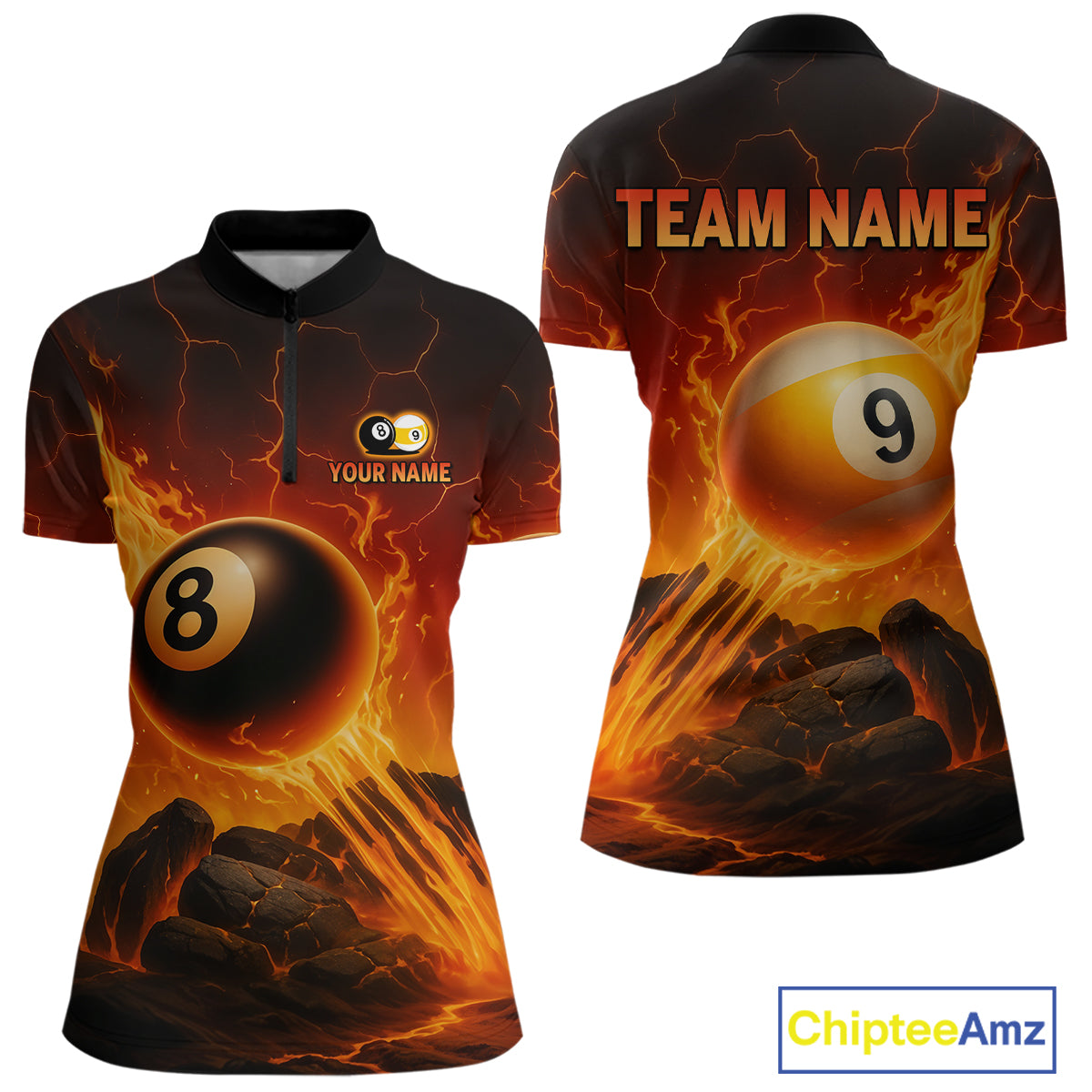 Personalized Fire 8 Ball & 9 Ball Billiard Shirt For Women Custom Pool Team Jersey Polo & 1/4 Zip TDM4281