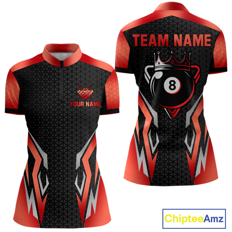 Black And Red 8 Ball Pool Crown Billiard Shirt For Women Custom Billiard Jersey Team Polo & 1/4 Zip TDM4322