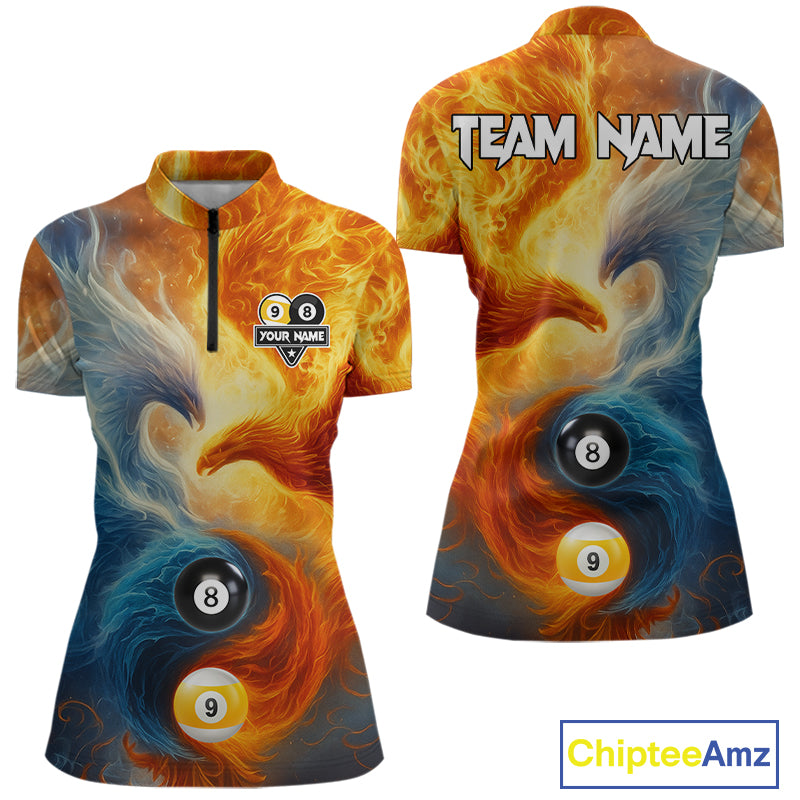 Personalized Water Fire Phoenix Yin Yang 8&9 Ball Billiard Shirt For Women, Billiard Team Jerseys TDM4372
