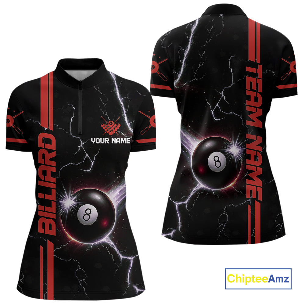 Personalized Red 8 Ball Thunder Lightning Billiard Shirt For Women Custom Pool Team League Jersey TDM4429