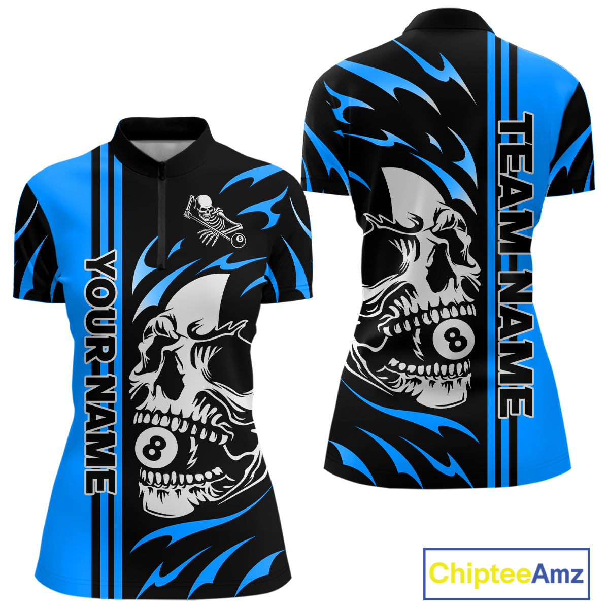 Personalized Blue 8 Ball Skull Billiard Shirt For Women Custom Pool Team Jersey, Billiard Outfit TDM4460