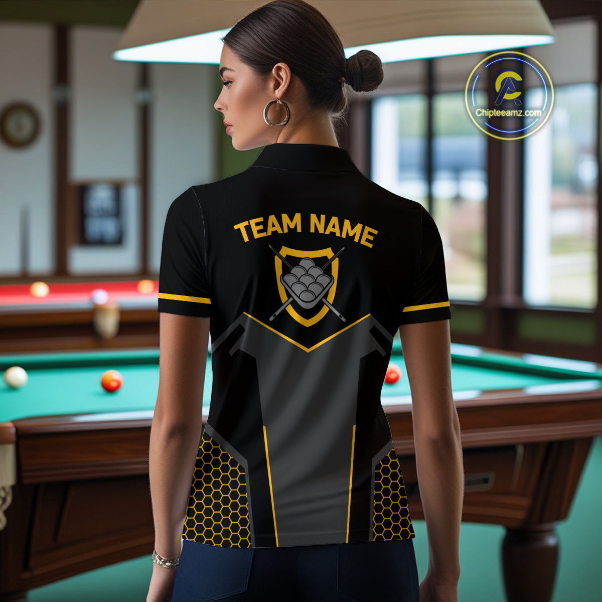 Personalized Yellow Black 9 Ball Billiard Shirt For Women, 9 Ball Pool Team Jersey Polo & 1/4 Zip TDM4476
