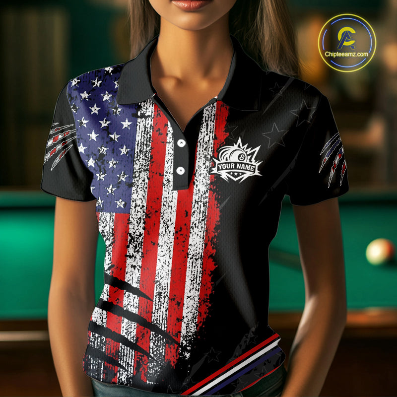 Personalized American Flag Billiard Shirt For Women Custom Grunge Vintage Patriotic Pool Team Jersey TDM4499