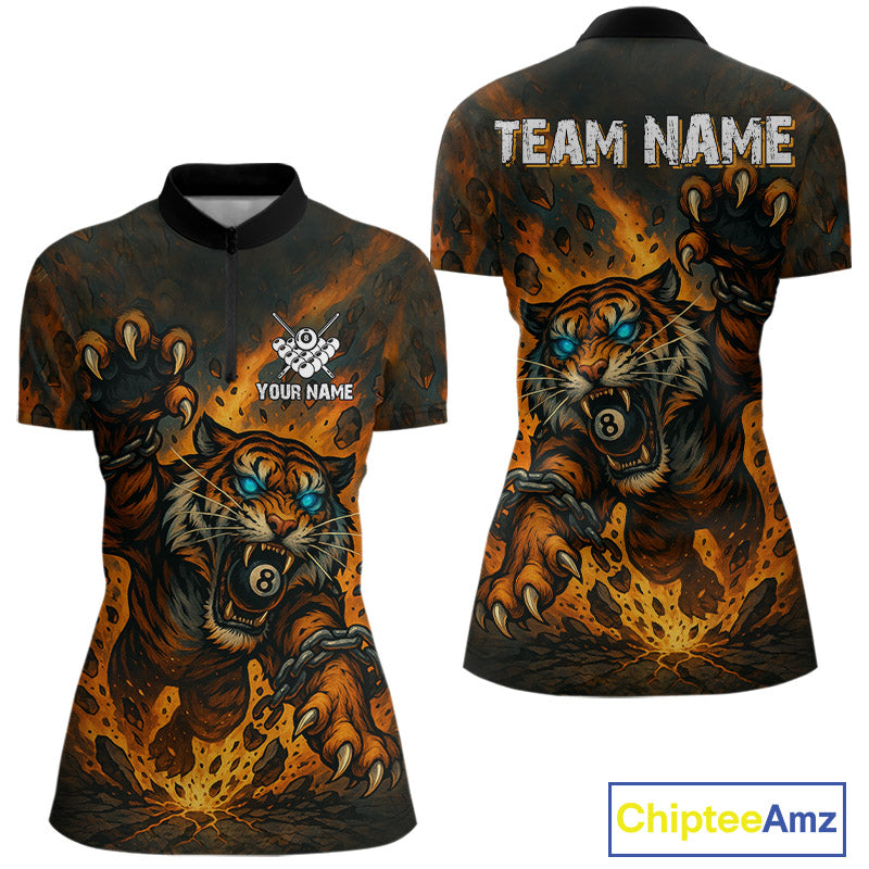 Personalized 8 Ball Tiger Fire Billiard Shirt For Women Custom Pool Team Jersey Polo & 1/4 Zip TDM4538
