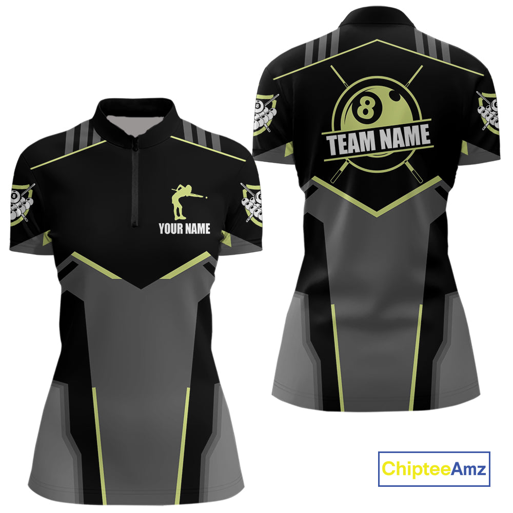 Billiard Jerseys For Women Custom Polo & 1/4 Zip Billiard Shirt, Team Pooler Short Sleeve|Green Neon TDM4741