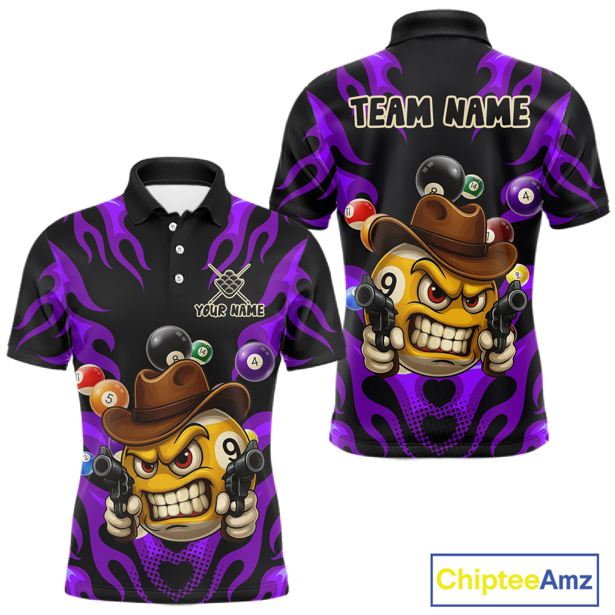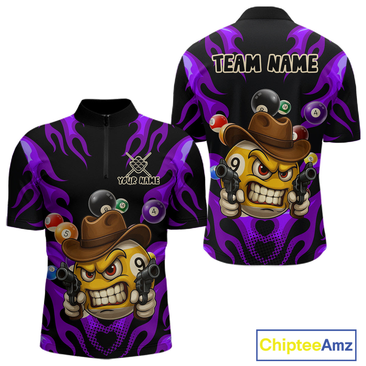 Personalized Purple Funny Flame 9 Ball Billiard Shirt For Men, Pool Team Jersey Polo & 1/4 Zip TDM4988