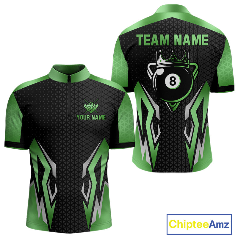 Black And Green 8 Ball Pool Crown Billiard Shirt For Men Custom Billiard Jersey Polo & 1/4 Zip TDM4991