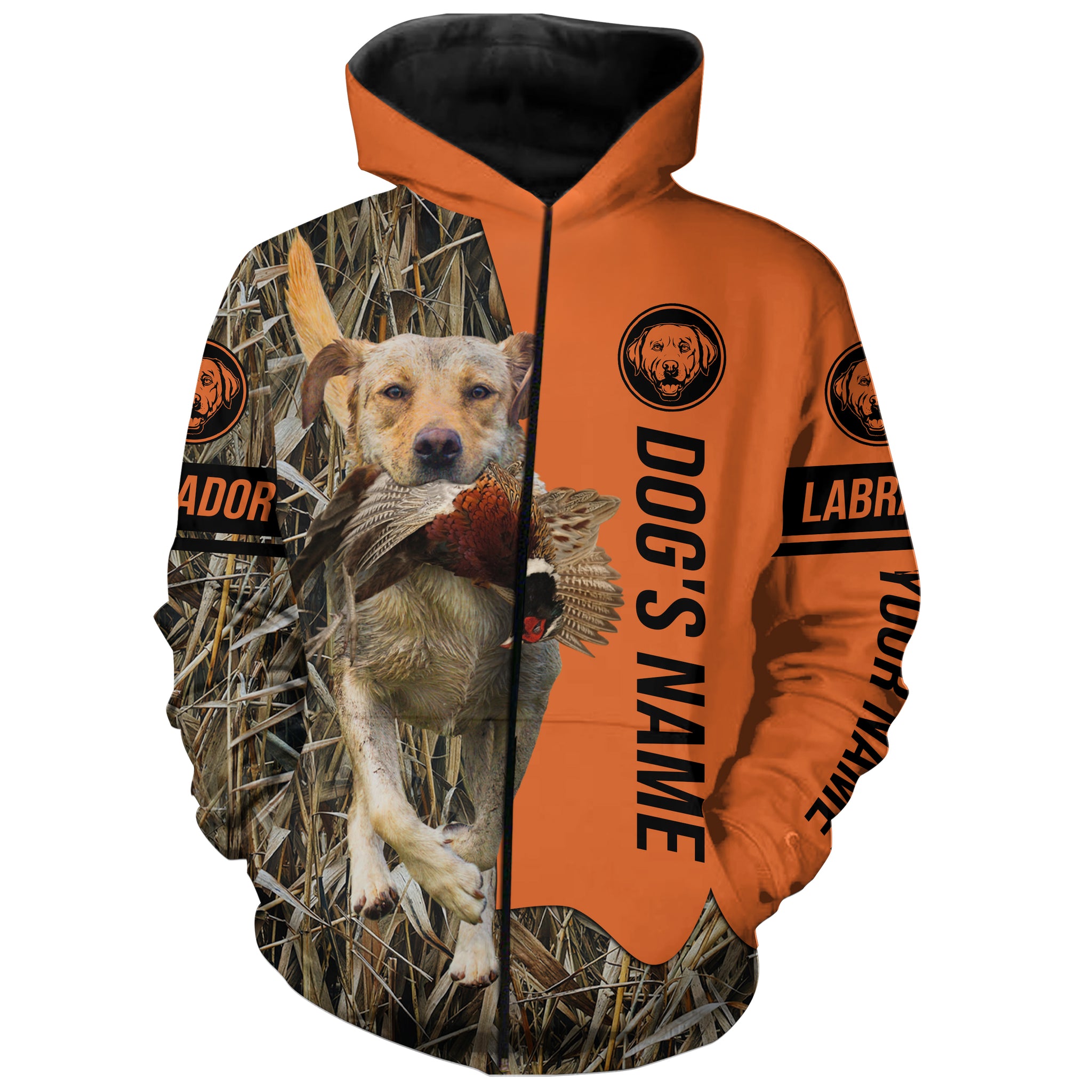 Yellow Labrador Retriever Hunting Dog Customized Name Zip Up Hoodie Shirt FSD4075