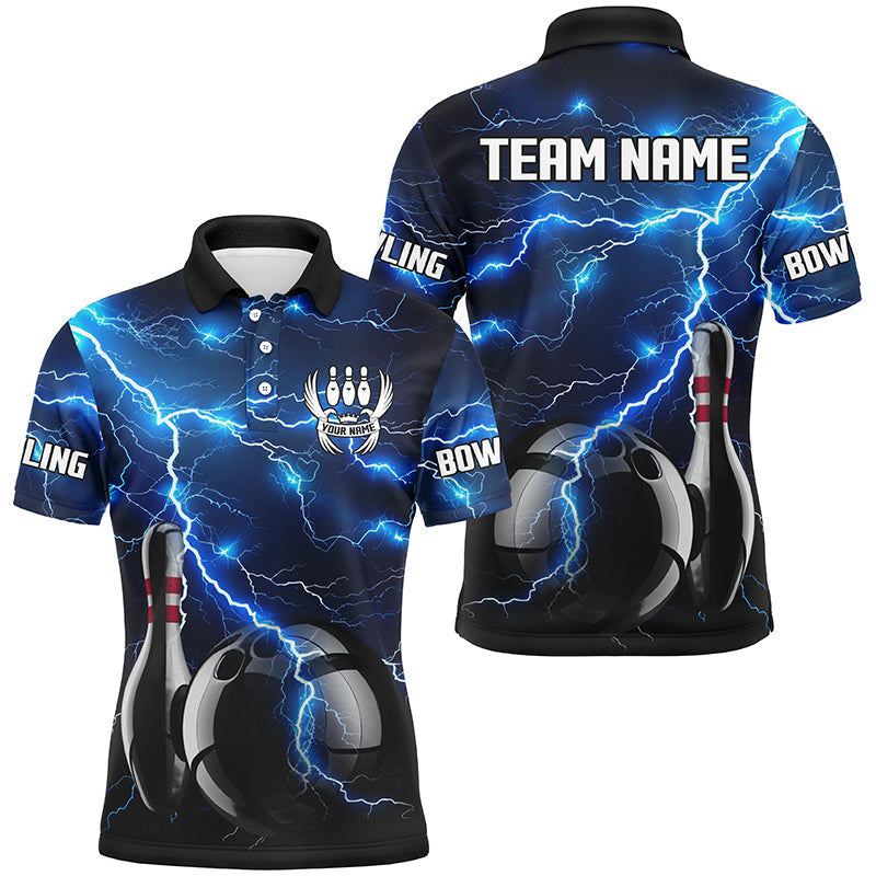 Blue Lightning Thunder Black Bowling Polo, Quarter zip Shirt for men custom storm bowling team jerseys NQS8386