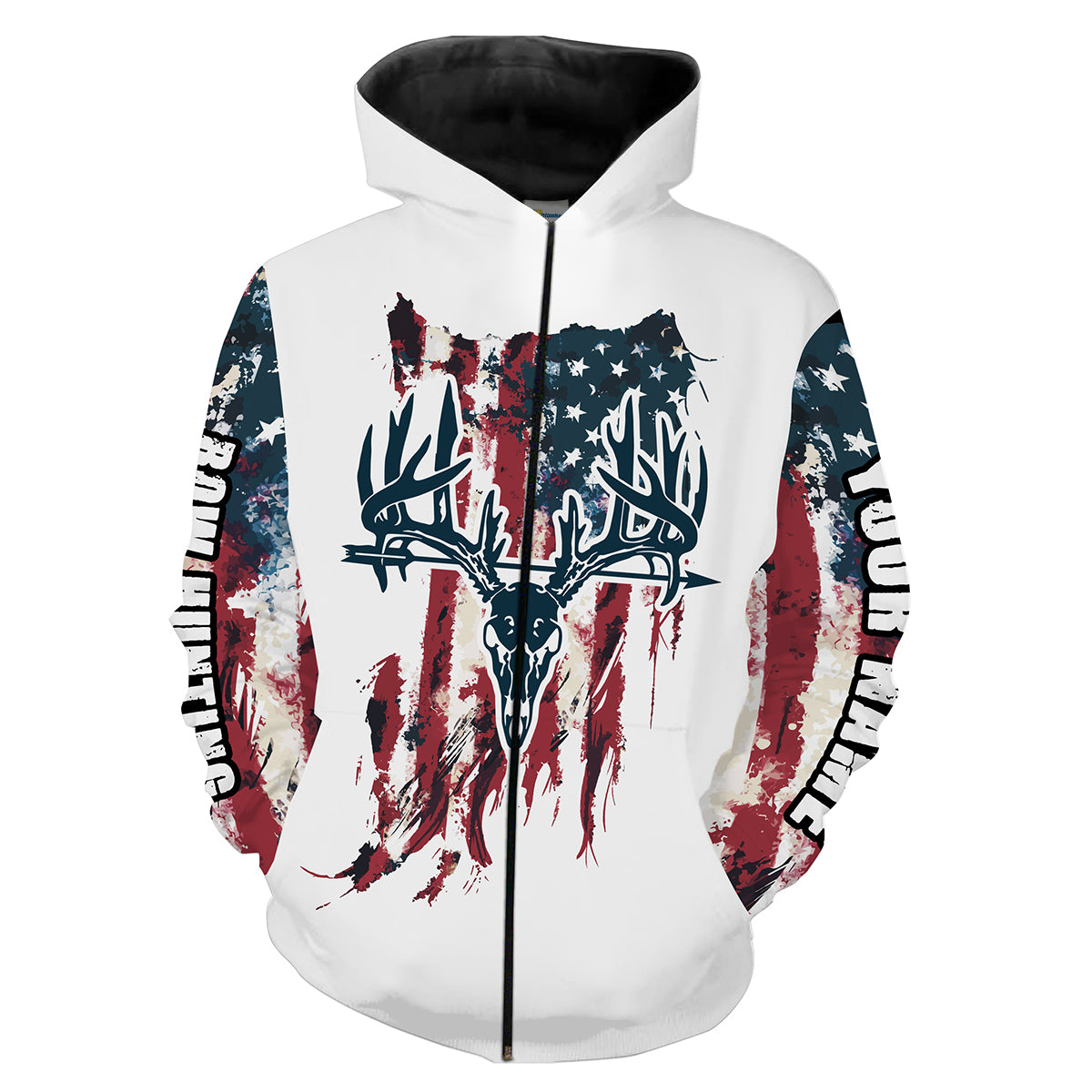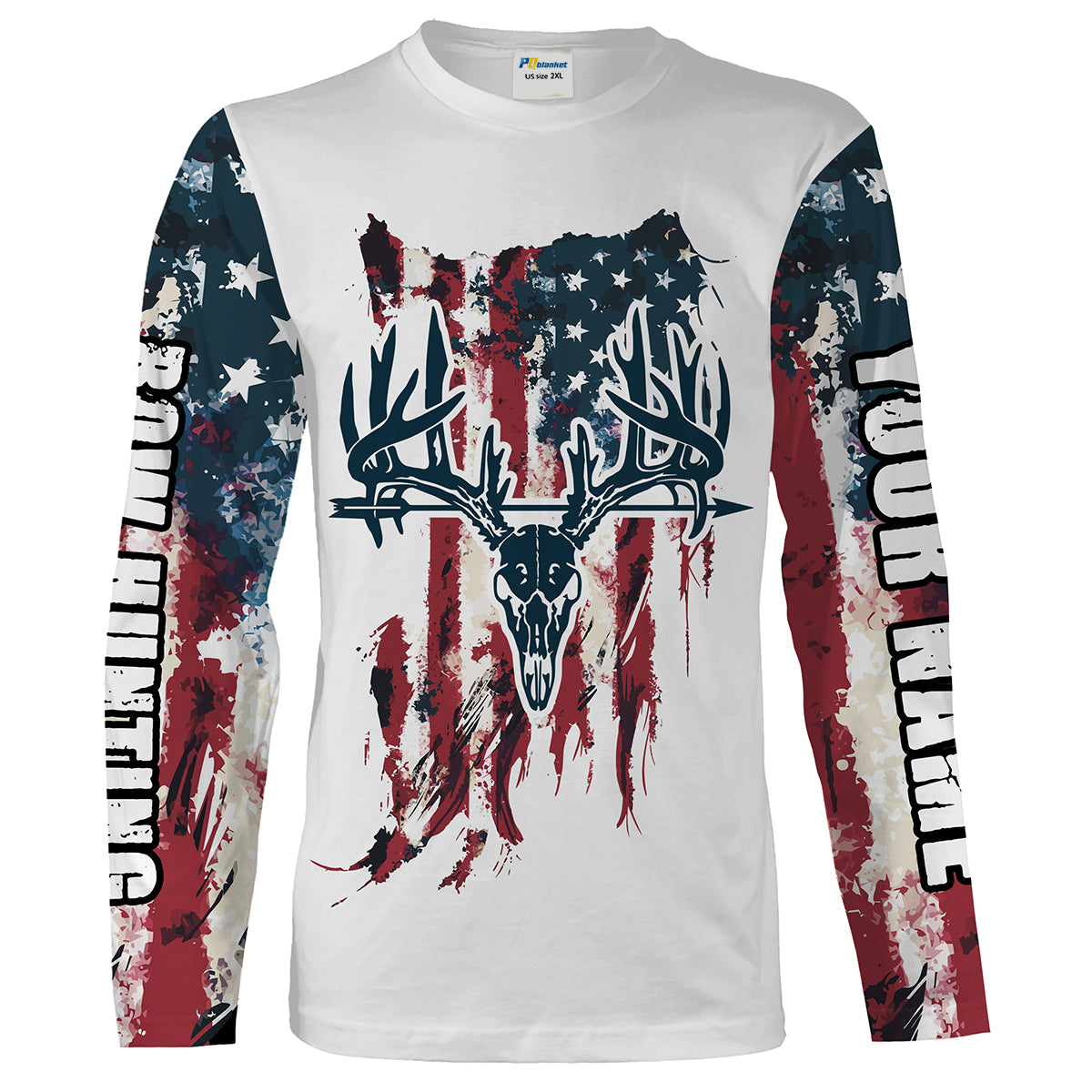 Bow Hunting Archery Deer Skull American flag custom Name Shirts - Patriotic Deer Bowhunting gifts FSD2395