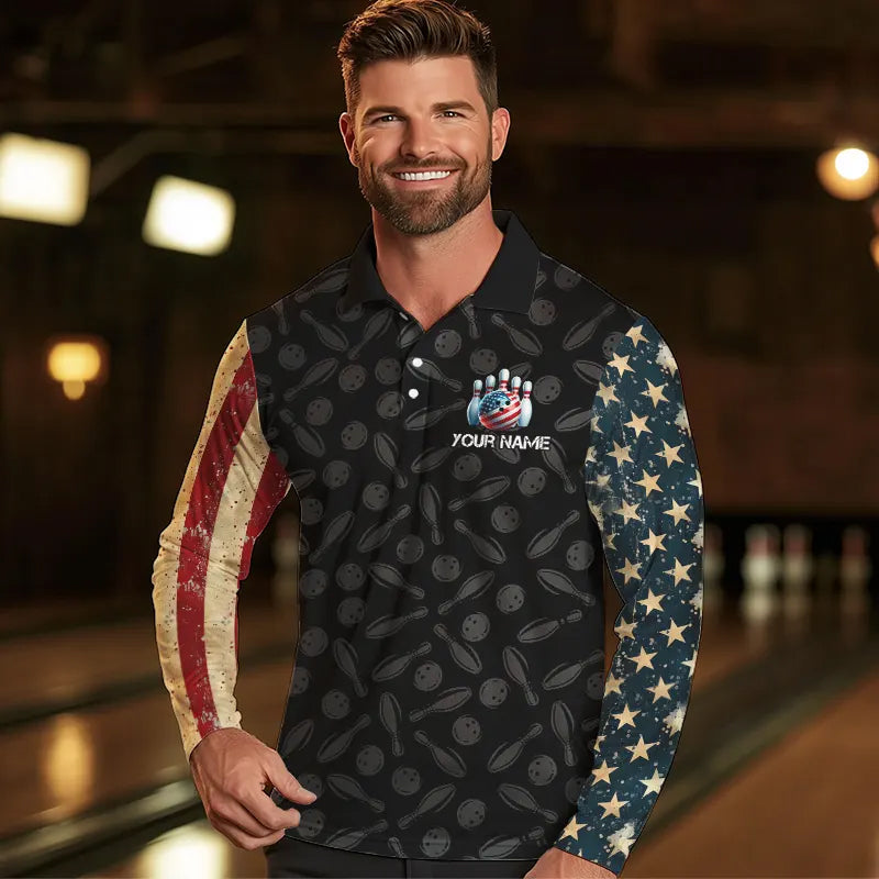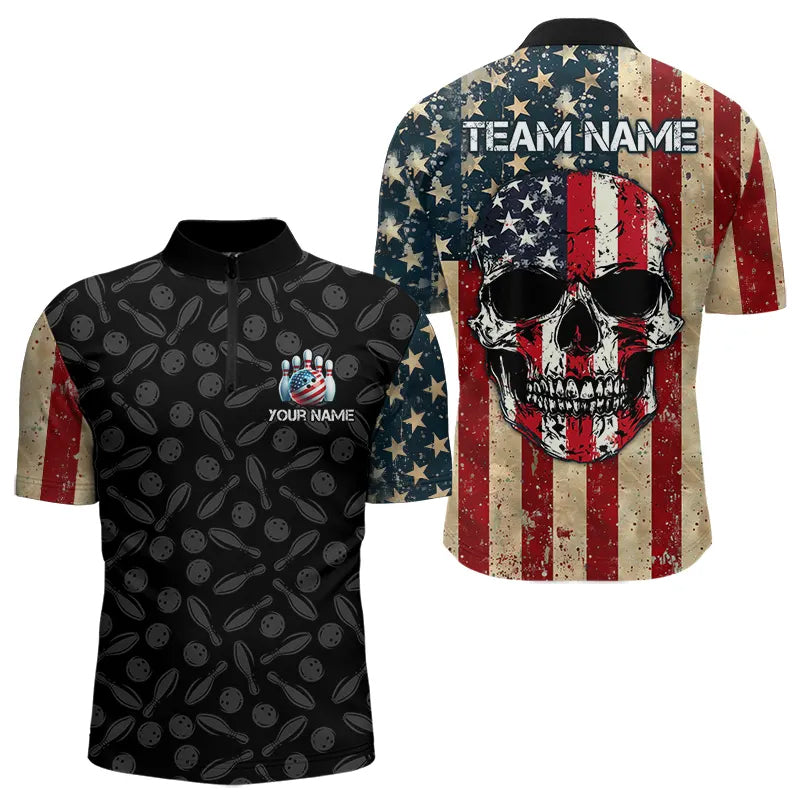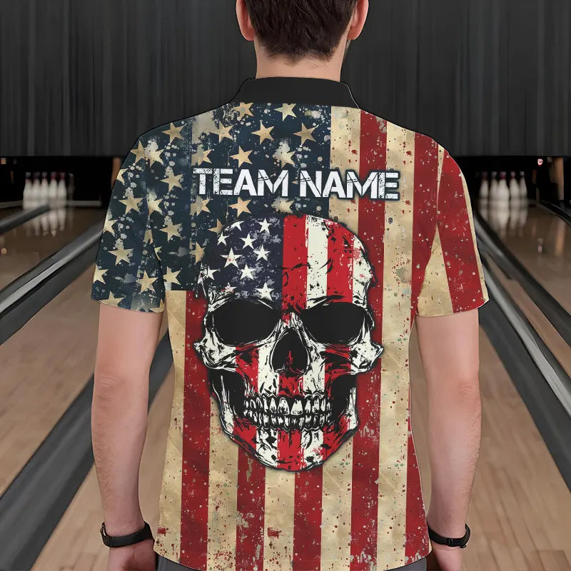 Retro American Flag Skull Camo Bowling Shirts For Men Custom Bowling Team Shirts Bowler Outfit NQS9371