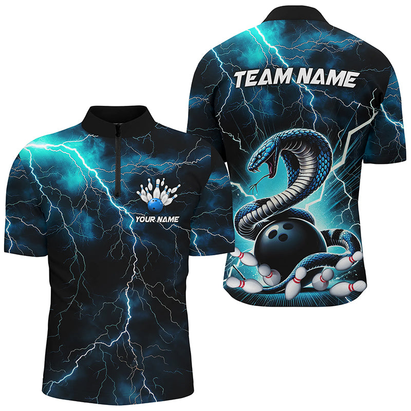 Blue Thunder Lightning Custom Cobra Snake Bowling Shirts For Men, Bowling Team Shirt With Names IPHW7423